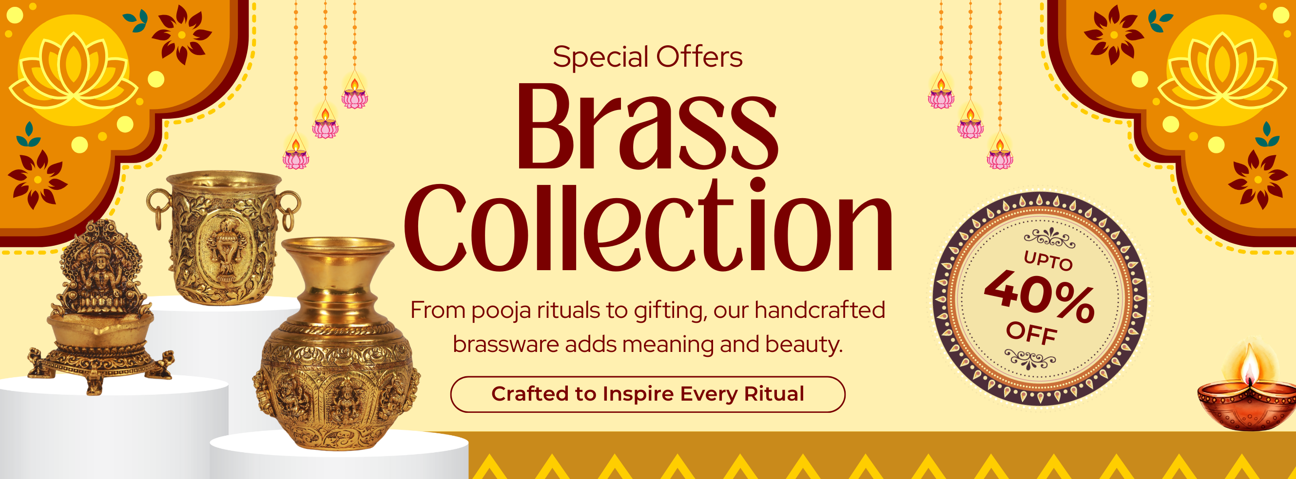 Perfect for Diwali or daily rituals, these brass lamps bring warmth and auspicious energy to any space.